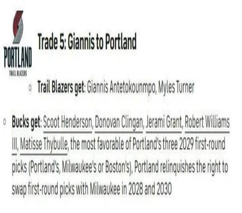 這段時間,開拓者竟然屢次傳出了跟字母哥的“緋聞”。近日知名美媒CBS體育又為開拓者提供了一筆交易方案,即他們得到字母哥+特納,送出亨德森+克林根+格蘭特+羅威+塞布爾+三個29年首輪簽中順位最優(yōu)的簽位,同時放棄28年以及30年與雄鹿的首輪簽互換權(quán)。