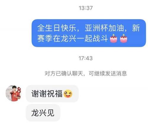 另一名中場核心李鎮(zhèn)全,和多支球隊產(chǎn)生聯(lián)系,有球迷私信李鎮(zhèn)全為他送上了生日祝福,并表示新賽季在龍興一起戰(zhàn)斗。李鎮(zhèn)全的回復(fù)到:“謝謝祝福,龍興見”,這一語雙關(guān)讓球迷可以放心了。首先李鎮(zhèn)全新賽季還會為重慶效力,哪也不會去,沖了兩個賽季才升入中超,球員對球隊有感情。其次,也再一次確定明年重慶銅梁龍的主場將會放在龍興。